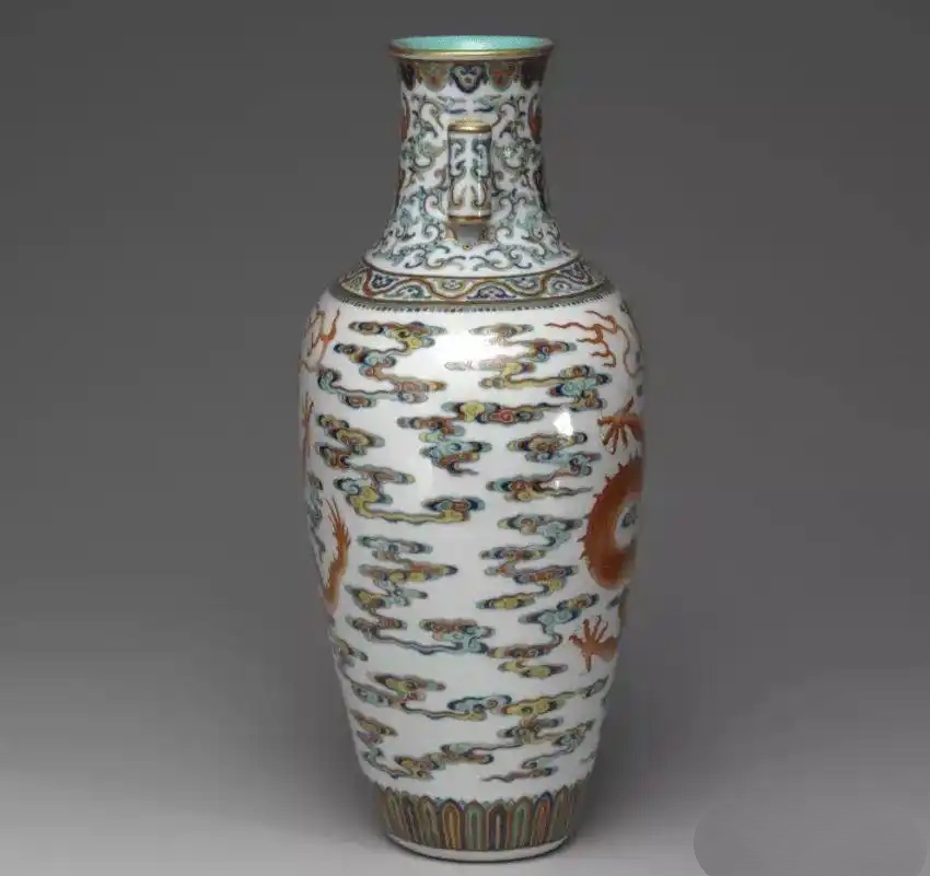 清乾隆 斗彩绿彩云龙纹罐(正面)