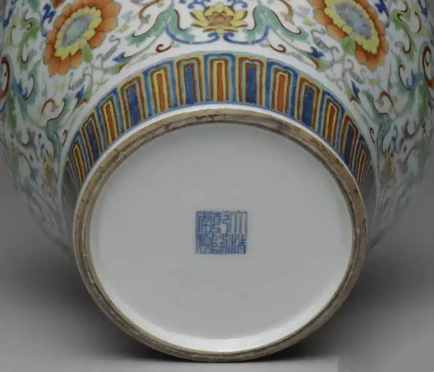 清乾隆 斗彩缠枝莲纹盖罐(底部款识)