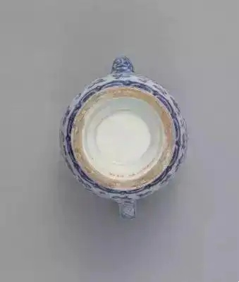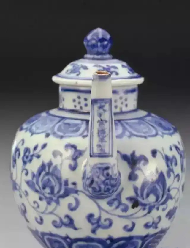 此壶大小适中,在结构上一改唐代执壶流部过短,宋、元执壶流部过长的弊端,更趋于合理化。其年款不署在底部而署于流上,审视中国历代陶瓷执壶,此种署款方式唯宣德朝所独有。此外,宣德官窑瓷器年款有些还署在器物的口沿、颈部、肩部、腹部等处,故有“宣德年款遍器身”之说。
