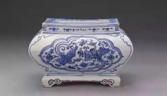 青花菱形开光双凤穿莲花纹长方炉 明宣德