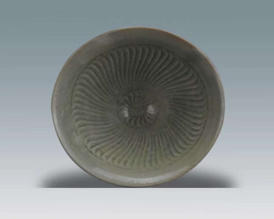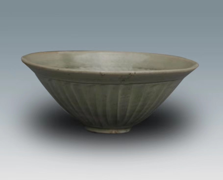 北宋耀州窑菊瓣纹斗笠青瓷碗