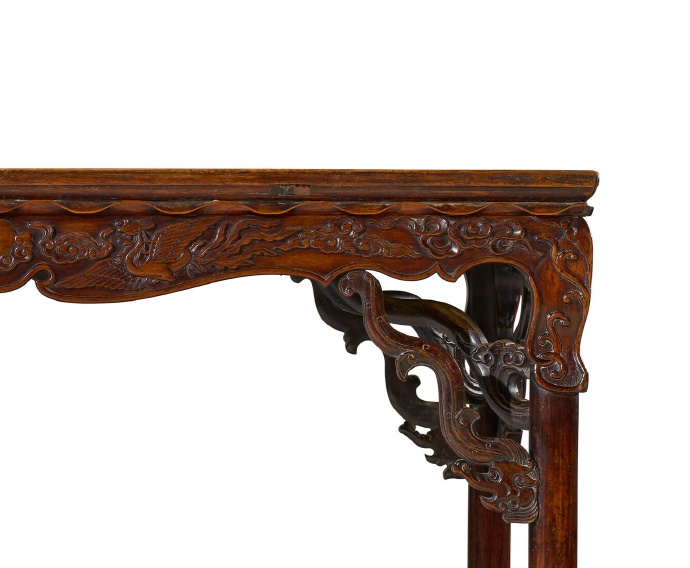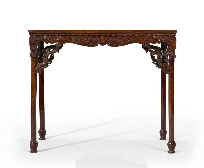 十六/ 十七世纪 黄花梨双凤朝阳桌展腿式半桌