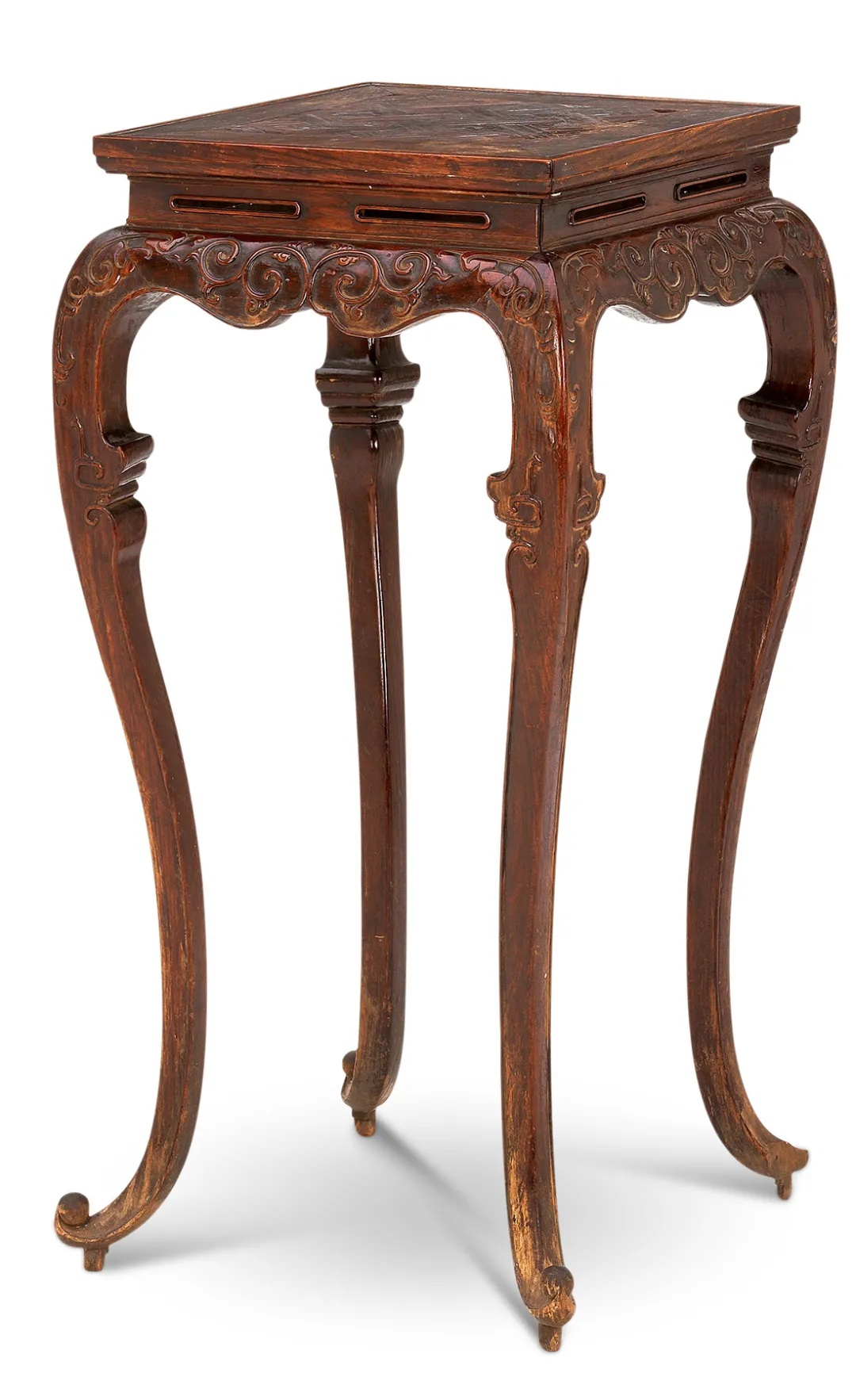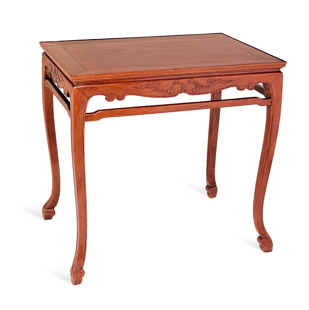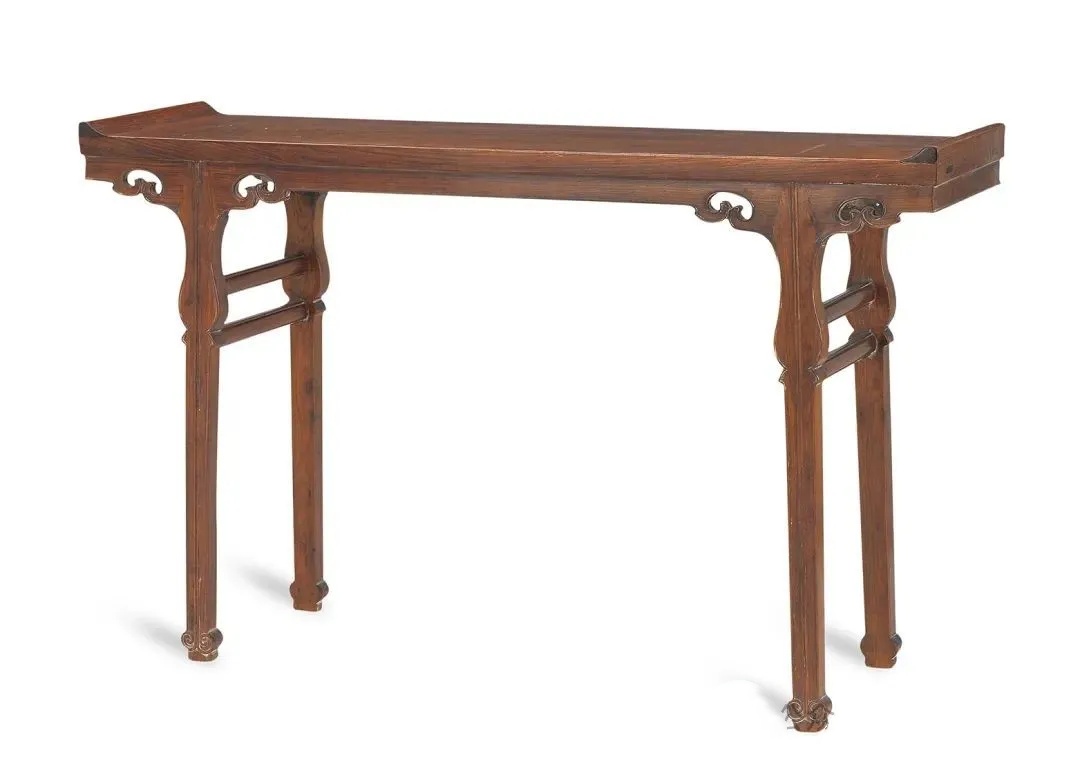 实际上,中国古典家具的命运在明代的发展是曲折的,按《明史》记载,自明代初年就开始制定海禁政策,先后颁布了许多禁令,以至于“寸板不许下海”,强调了国人不得下海通藩,由此禁止了自唐朝以来的海外贸易制度,使得社会的总体发展产生了一个坚实的壁垒,社会的生产力也被残酷的制约,人们的情趣在社会制度中显得灰暗而不振,直到明代隆庆元年(1567年)打开海禁之后,广泛的交流,文化的融合,终于看到明朝社会出现了一个欣欣向荣的开放局面。特别是自明代万历以来,正是中国古典家具这枝奇葩从含苞到绽放的时期,中国古典家具的发展开始由厚重的漆灰家具风尚,开始过渡到轻揩的素漆家具。 明 黄花梨三弯腿长方桌 十七世纪 黄花梨架 无数个文人的风雅巧思,与工匠的技术彰显,促使着明代家具的结体感觉,不仅是绝妙工艺,还拥有一种高致的意韵。特别是这一时期家具的质体,更是发生了情趣上的蜕变。众所周知,宋元以来的上层社会所使用的古典家具多为杉木、松木、柏木所做,人们重其用,而敷其形,思想上多是“百年之后,配不堪用”,所以对于家具的结体上也不尽讲究,以至于这一时期的家具多出现“钝角粗棱”的造型。当然也有用漆灰加以裹罩的,使家具的使用得以延长,但是,时间已久,还是出现了漆裂灰断的面貌。终于到了明代后期,稀贵无比的黄花梨木出现了!除了木性的坚实之外,不论是木质的纹理还是淡雅的色泽似乎更能挖个中国古典家具的一种审美倾向。黄花梨家具的乍一浮现,就随即成就了这一时期家具史的一个永恒的经典。 清初 黄花梨南官帽椅(一对) 黄花梨南官帽椅 其间架之美, 或空灵,或隽秀,或遵劲; 用材之美, 或行云,或律动,或奇趣; 意韵之美, 或高古,或文气,或禅静。 哪怕一张椅,一张榻,再穿过悠远的历史天空来到今天,当你面对她的时候,依然焕发着强有力的生命力。 清 黄花梨镂雕螭龙纹屏风