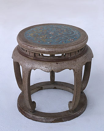 保存这么完整,螺钿细如白砂的,这是第一次看到,其实把螺钿磨细,与漆混合,这都不算什么,我好奇的是谁第一个发现螺钿可以这样用,而装饰效果又这么好?这个人真是天才。鼓凳的座面用珐琅装饰,这也不稀奇,见过故宫整套用珐琅做的椅子,桌子,那是真奢侈,漂亮。