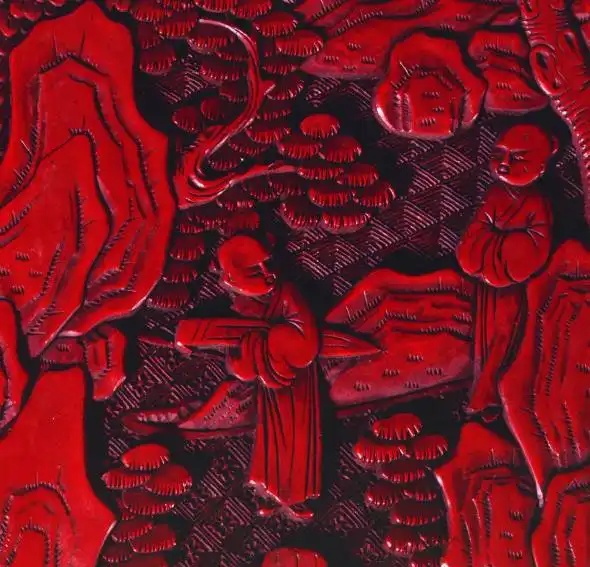 清 剔红人物缠枝花卉圆桌