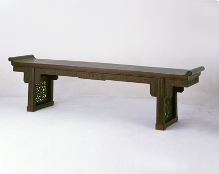 这张案子不可谓不庄重,用料不可谓不大,气派有了,可是不好看,尤其是挡板部分,气郁得很,牙条也不好看,这样的牙头牙条在京做柜子上经常能看到。