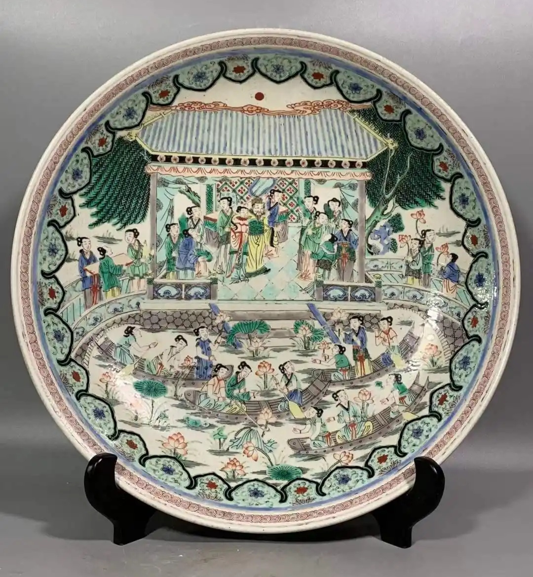 五彩人物夜宴图故事纹赏盘-大清康熙年制「旧藏」直径41.5CM