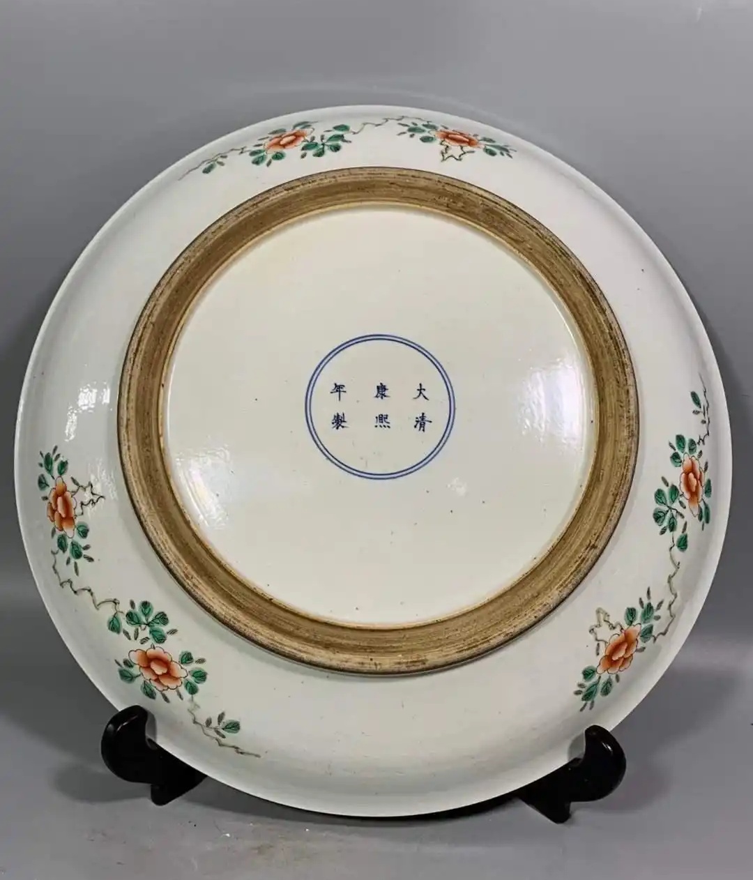 盘底款识“大清康熙年制”,点明了这件赏盘的制作年代。康熙时期,是中国瓷器工艺发展的高峰期之一,特别是五彩瓷器,以其色彩艳丽、画工精细而著称。康熙皇帝对于瓷器工艺的重视和支持,使得这一时期的瓷器制作达到了前所未有的高度。这款五彩人物夜宴图故事纹赏盘,无疑是康熙时期瓷器工艺的杰出代表。