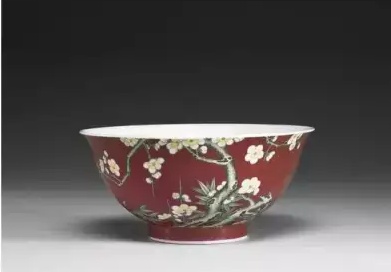 清 雍正 珐琅彩紅地梅竹碗