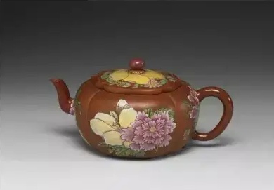 清 康熙 宜兴珐琅彩花式茶壺