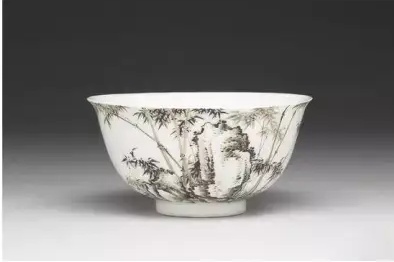清 雍正 珐琅彩墨色竹石碗