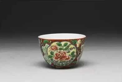 清 雍正 珐琅彩紅地开光花卉杯