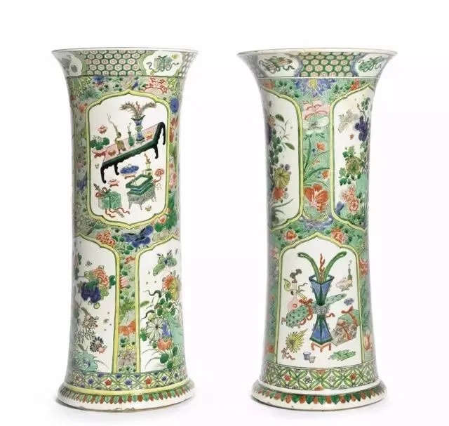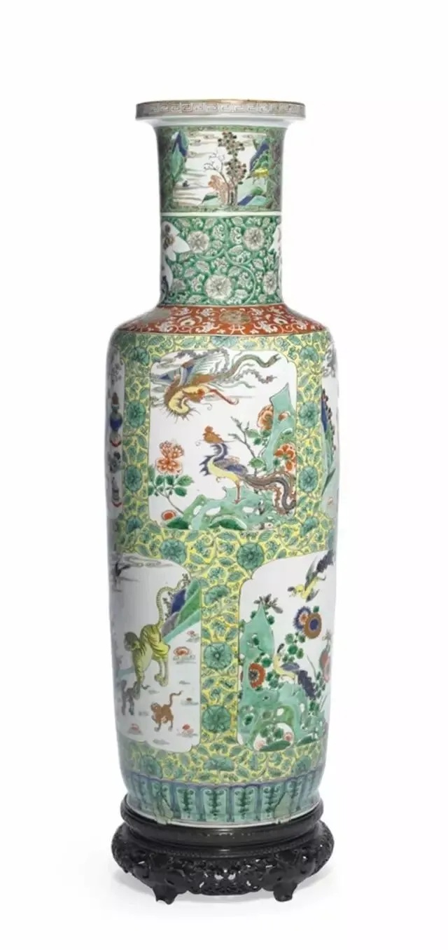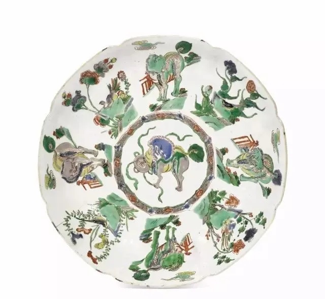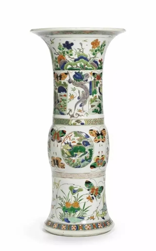 尺寸:高33.6cm 清康熙 五彩瑞兽纹花觚 尺寸:高48.2cm 清康熙 五彩狮球图花口盘 尺寸:直径27cm