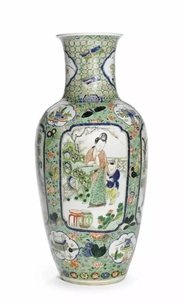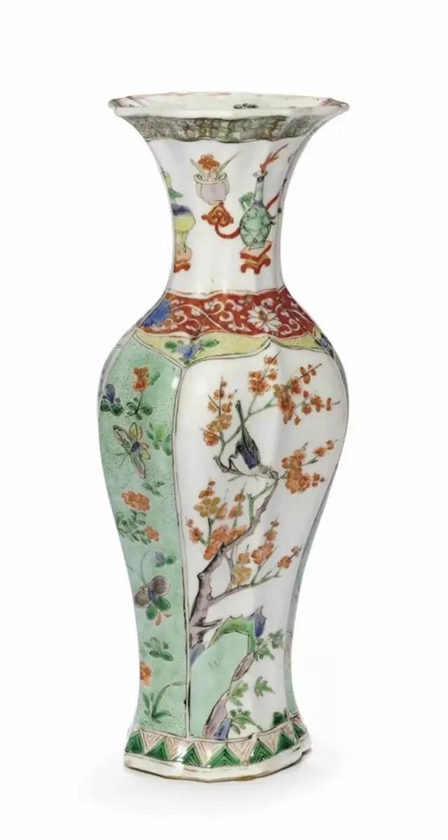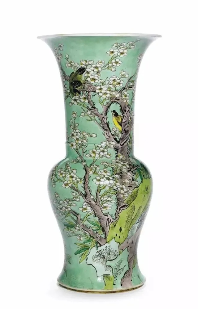 清康熙 绿地素三彩喜上眉梢图凤尾尊