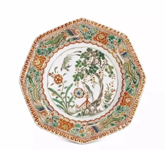 Lot 885 清康熙 五彩花鸟纹八方盘