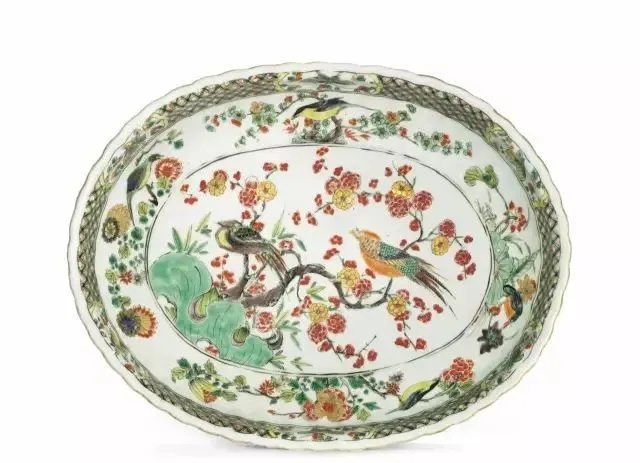 Lot 886 清康熙 五彩花鸟纹椭圆盘