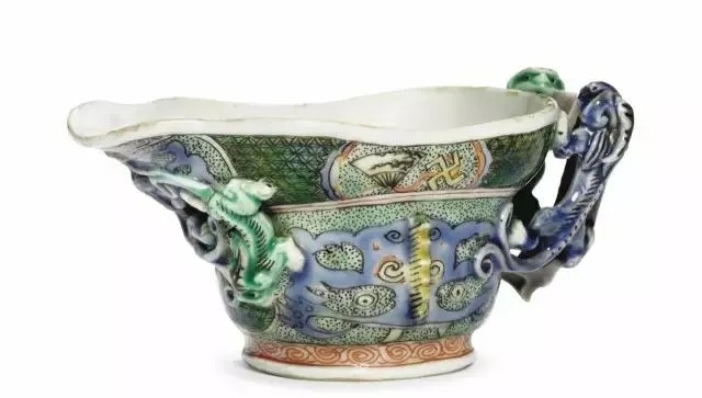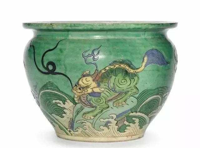 清康熙 五彩堆塑螭龙饕餮纹匜