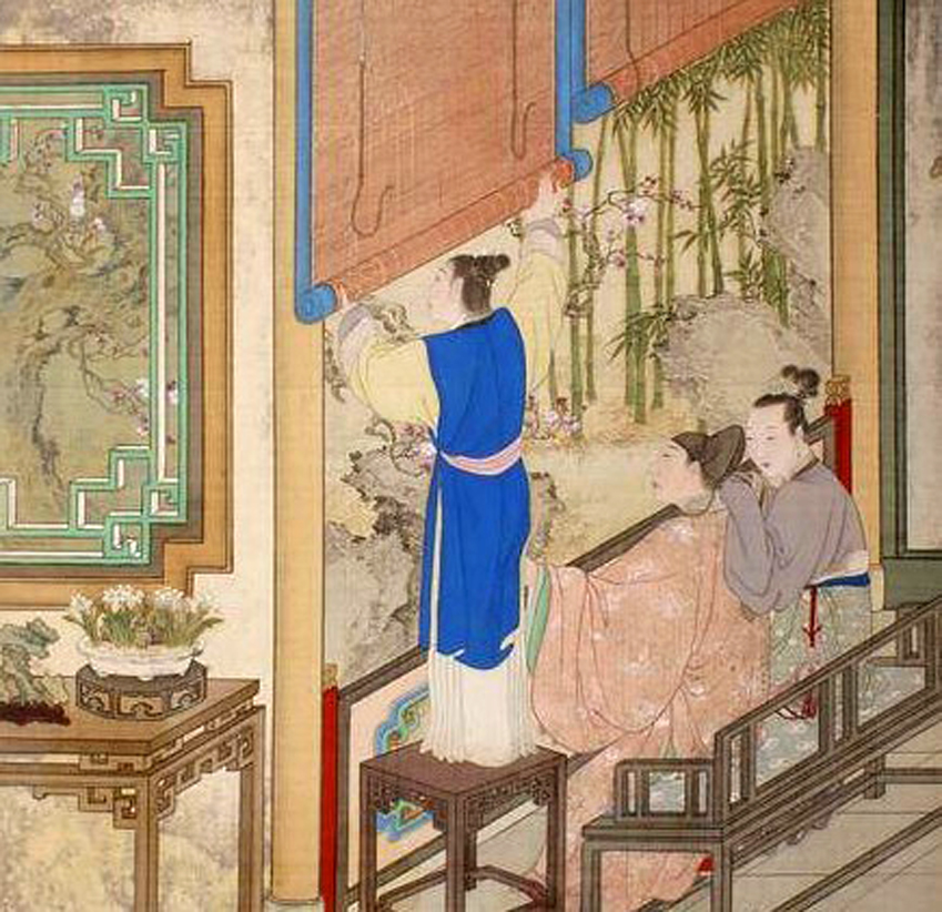 乏味的两件家具。倒是古人的情趣可以看看,打开窗户,卷起竹帘,观赏花园的风景。总看不烦呀?