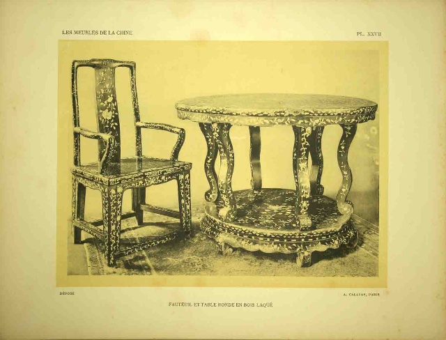 桌子是清式灯笼桌的造型,然而螺钿镶嵌的风格和椅子上的镶嵌类似,或是同时期的桌子。