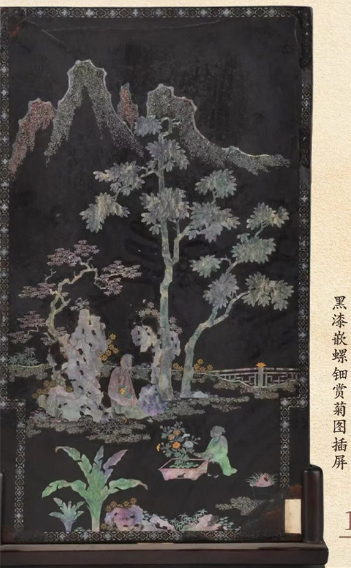 黑漆嵌螺钿赏菊图插屏