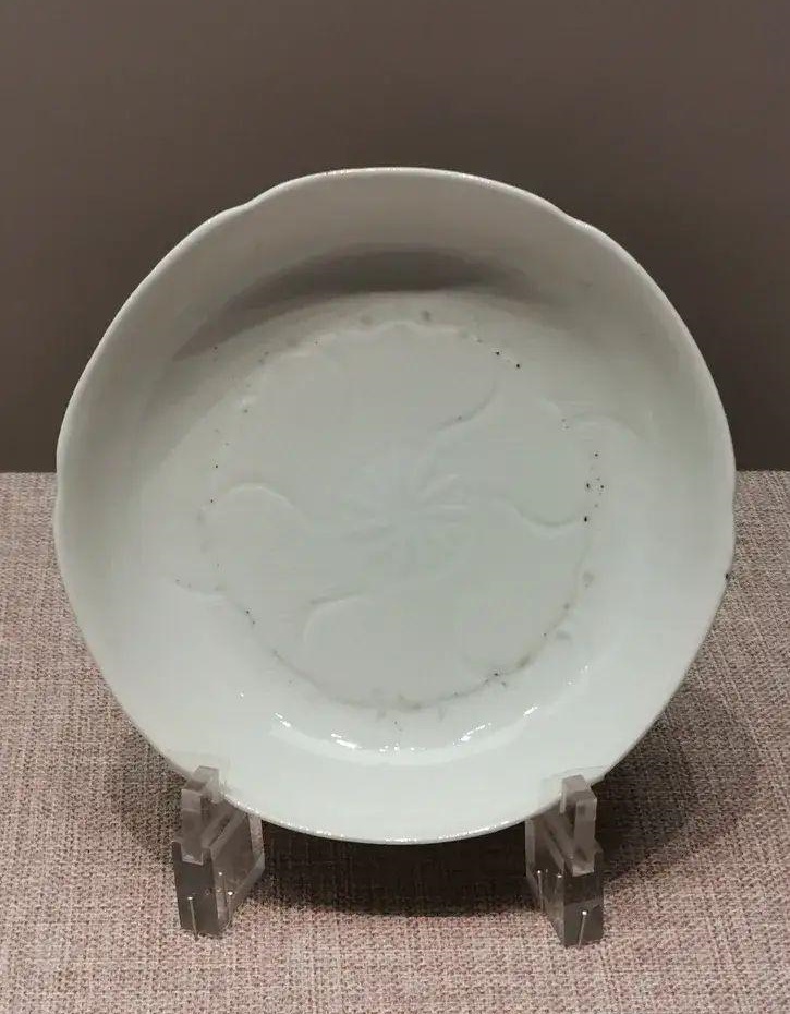 白釉海棠口剔刻花盘