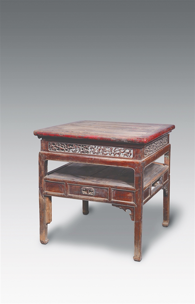恭王府博物馆藏清代黄花梨螭纹双层带套面烤肉桌。