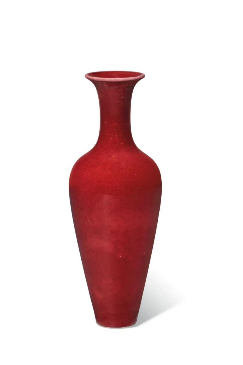 豇豆红柳叶尊是康熙皇帝最喜爱的瓷器,经常置于书房之中。这款清康熙豇豆红釉柳叶尊,底纹写有“大清康熙年制”六字楷书,源自史蒂芬·琼肯三世珍藏。