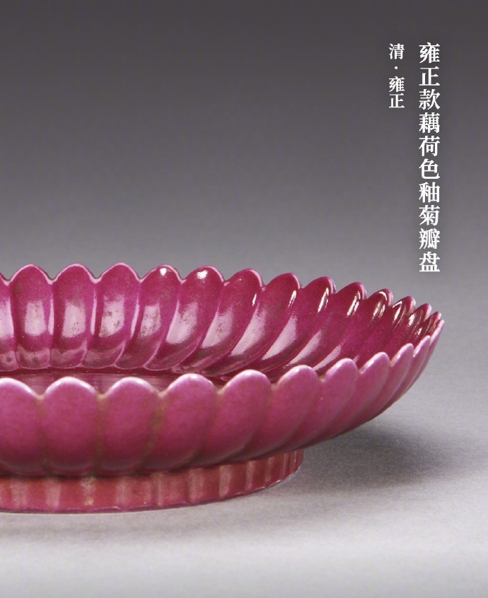 清朝雍正胭脂水釉菊瓣盘