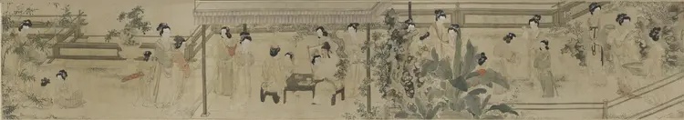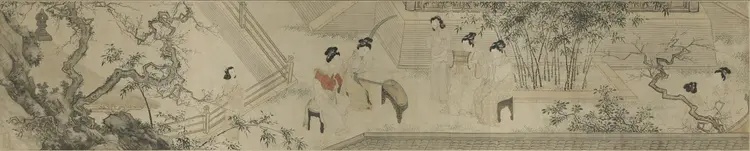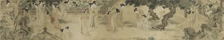 收藏在上海博物馆的《仕女图》长卷,笔法简洁,意境却格外生动。它描绘了明代宫廷女子的生活常态。整幅长卷共分为六个部分,每一部分都是一个单独场景。《仕女图》的作者杜堇是明代一位著名的画家,《仕女图》中所描绘的场景是明代宫廷中女性的日常生活。