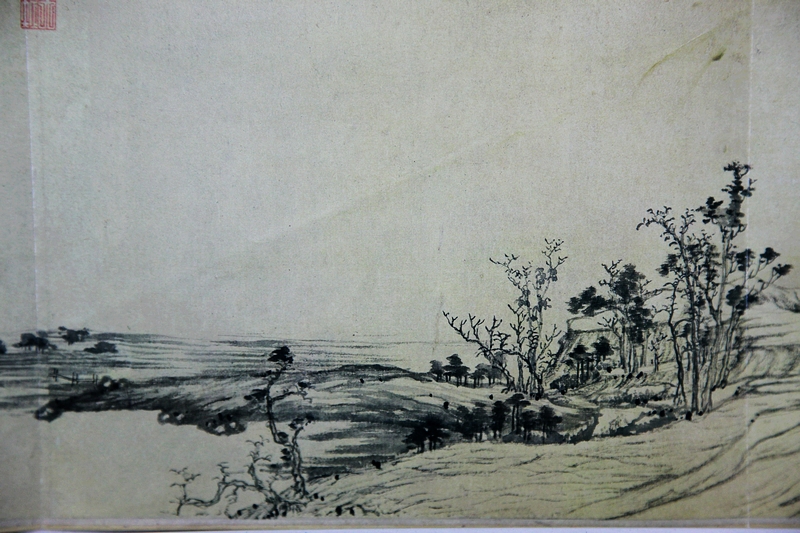 老庄哲学强调“有无相生”,《富春山居图》的精彩,也在画面虚实的互动平衡。“虚”是空白,在前段堆叠的大山群峰之后,黄公望用将近一公尺长的水平线条带出低矮江岸的土坡沙洲水口。没有山峰,只是单一的线条,和疏疏落落几点苔痕墨点。像在繁杂热闹的大交响曲中,忽然推出一段安静纯粹的大提琴单音的连续。绵延悠长,是看尽繁华的生命,可以回来低低细诉最深的内在心事了。