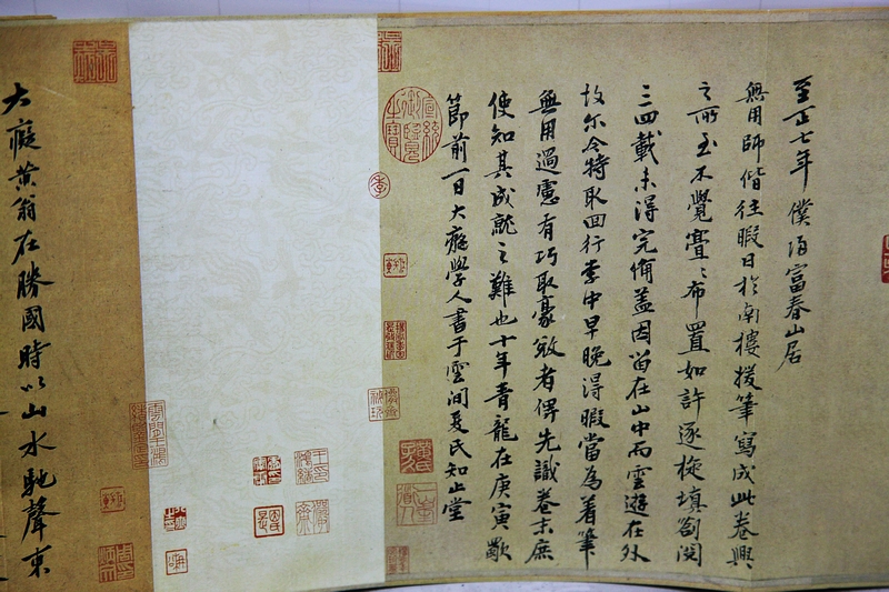 黄公望至正十年(西元一三五零年)在画上题跋,暗示将来这张画的落入人间“巧取豪夺”。精通易理,卜卦维生的老画家似乎早已洞识了天机。