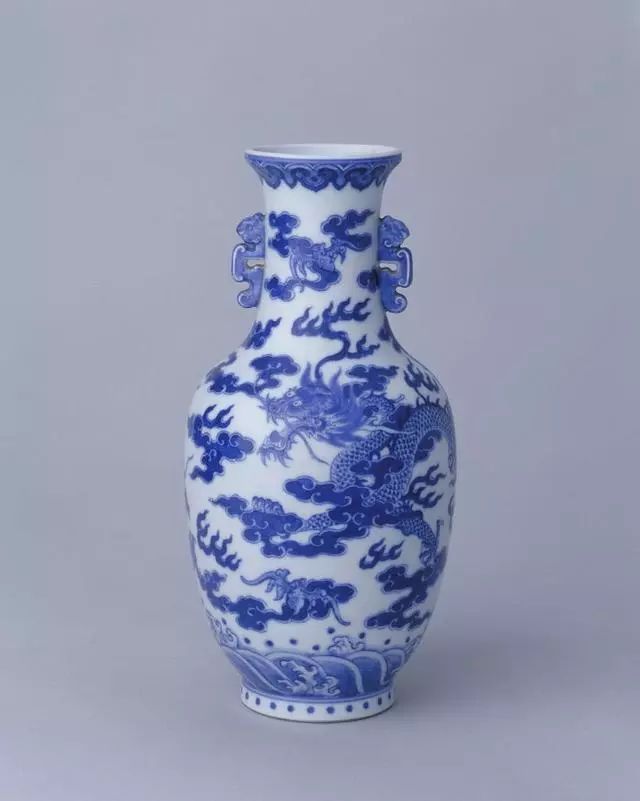 清嘉庆青花云龙纹螭耳瓶