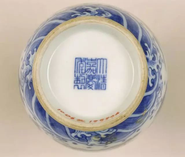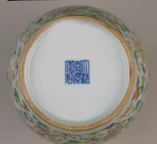 咸丰及其后的同治、光绪、宣统各朝再次兴起楷书题款风气,大多为六字双行或六字三行“大清××年制”款。 款外均无圈框,字体工整,清秀修长,有青花、红彩、金彩、墨彩及刻款等形式。 这一时期篆书款不多。 其中光绪时署有“大雅斋”、“天地一家春”及“长春同庆”、“永庆长春”等款的官窑器最为精致。 民窑款则多无定制,形式较多,同治时多有“同治年制”四字篆书戳记印款及抹红款。 光绪时多伪托款,一般是“康熙年制”或“若深珍藏”。