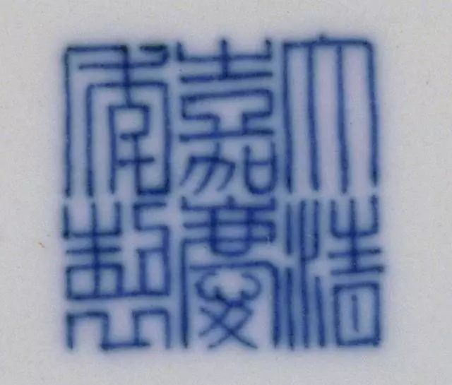 青花篆书“大清嘉庆年制”三行六字款