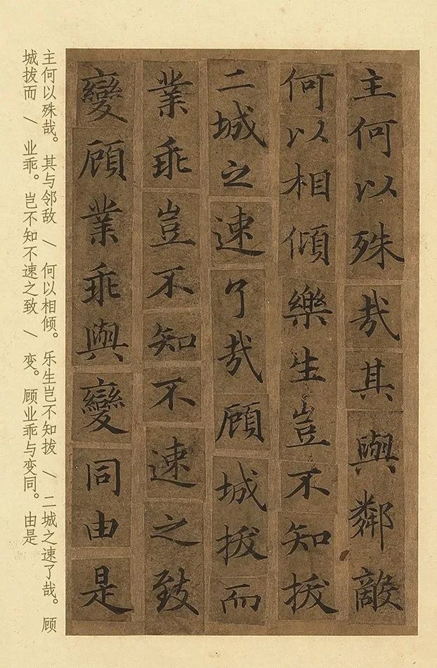 褚遂良传世最妙的一幅作品,就是晚年写的《小楷乐毅论》,此作原是王羲之临终前,写给儿子的一本秘籍,凝其毕生精髓,当时还嘱托儿子,不可向外人展示,传至隋朝,渐渐露面