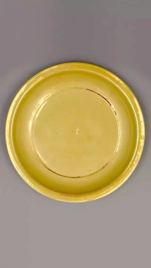 [明·弘治] 浇黄釉描金咸纹折沿盘