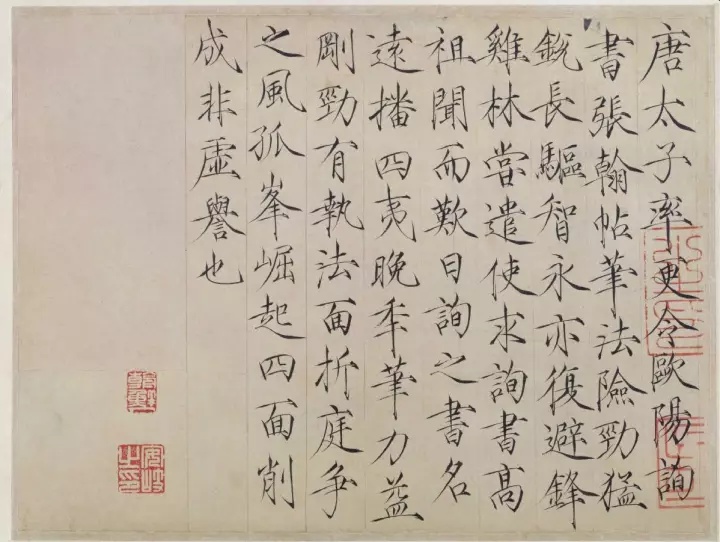 ▲赵佶《题欧阳询张翰帖后跋》,楷书,纸本,早期风格,北京故宫博物院藏。