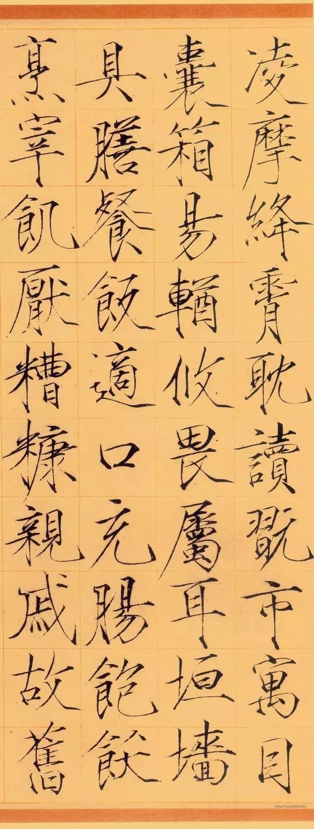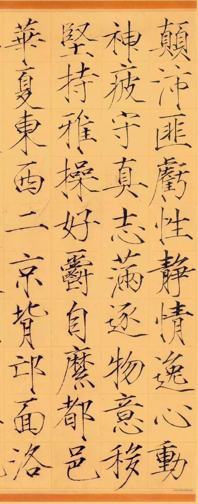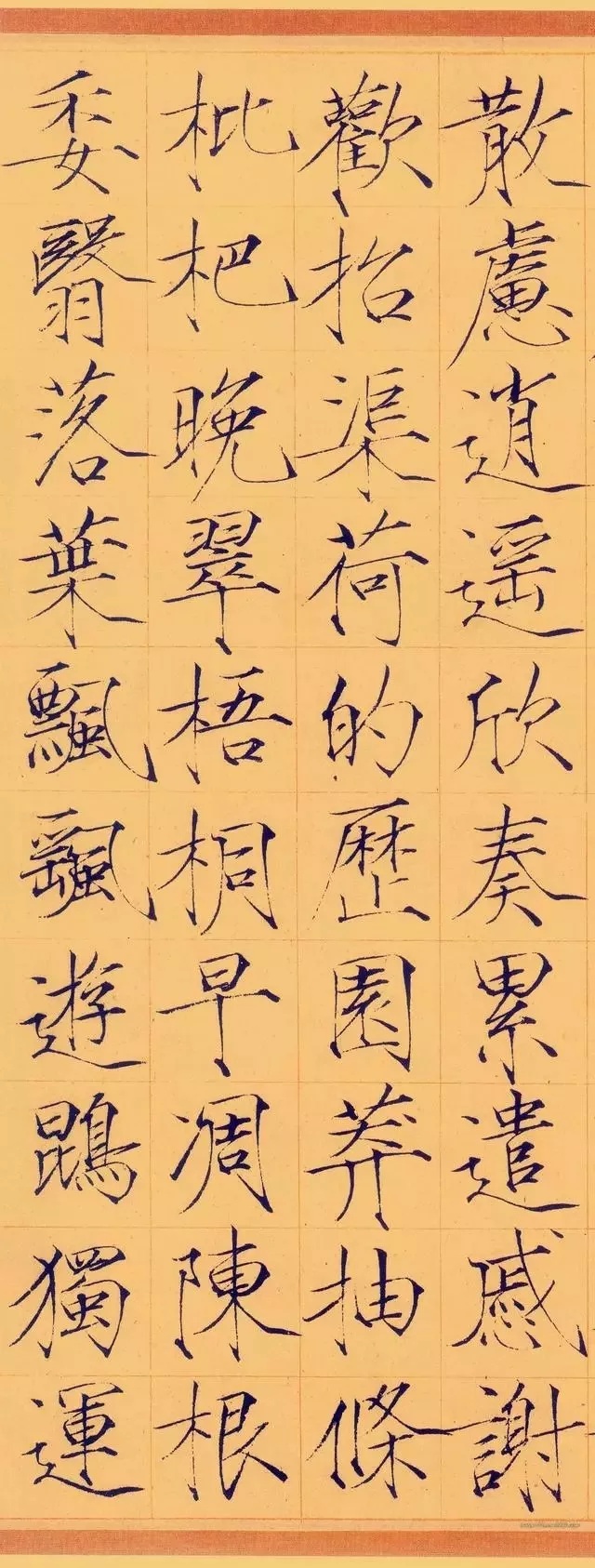 《夏日诗帖》是书于政和年间,经典瘦金名帖代表作,流传九百余年,至今保存完好,现珍藏于故宫博物院。是瘦金小楷的一块玲珑剔透光芒四射的完璧!古人评论瘦金体云:“横画收笔带钩,竖画收笔带点,撇如匕首,捺如切刀,竖钩细长而内敛,连笔飞动而干脆”,是对瘦金书特色的高度概括。又有赞云:瘦金书“金镂之妙,细比毫发,殆与神工鬼能,较奇逞并于秋毫间。”对瘦金体书法的高度艺术成就推崇备至。上述特点在此贴中可谓体现的淋漓尽致,毫无遗憾可言。