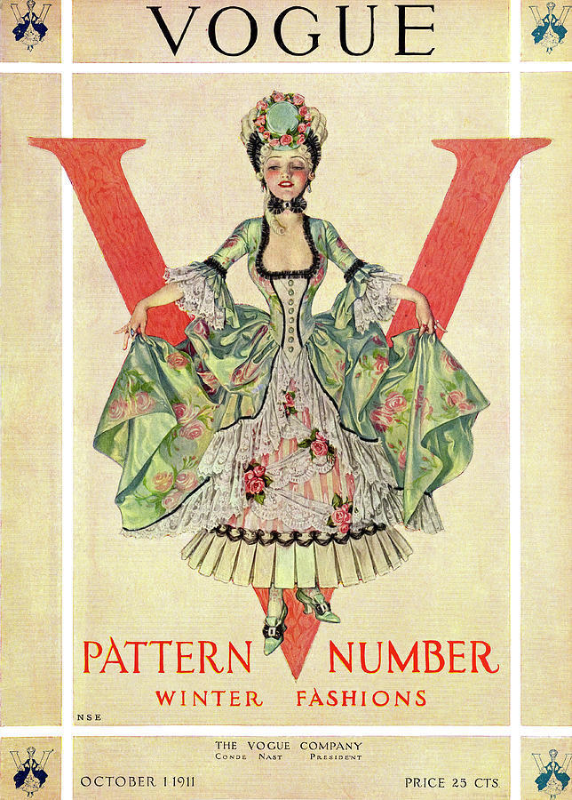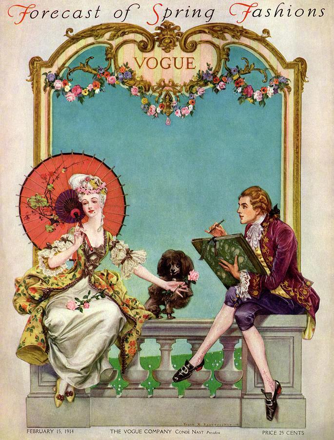 20世纪初Vogue杂志封面上盛装华服的18世纪淑女。作者:Frank X. Leyendecker