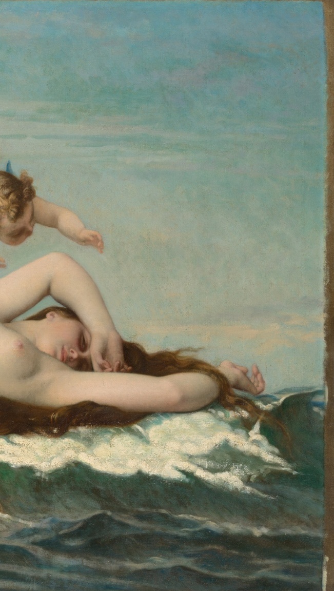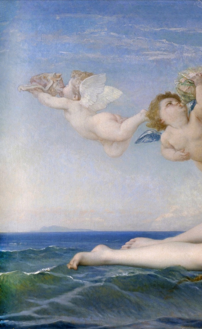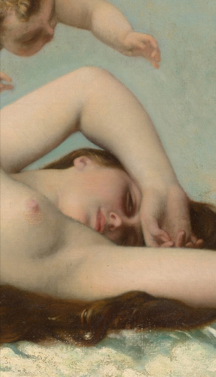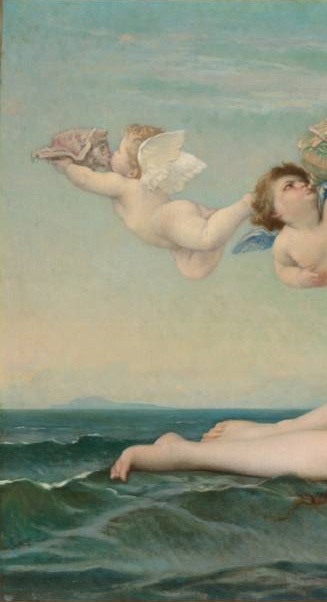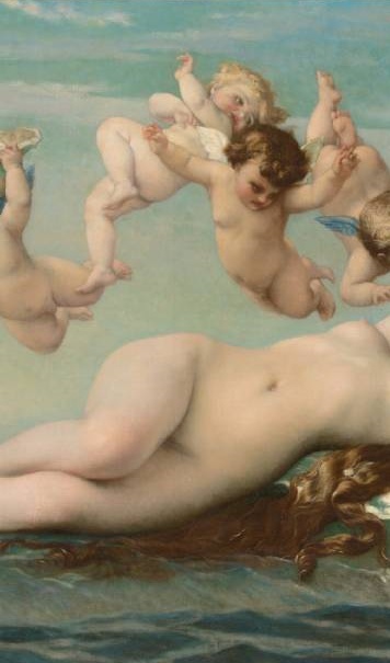 法国学院派(Academicism)画家亚历山大·卡巴内尔 (Alexandre Cabanel,1823 – 1889)的两版布面油画作品《维纳斯的诞生》(The Birth of Venus)及其细节。