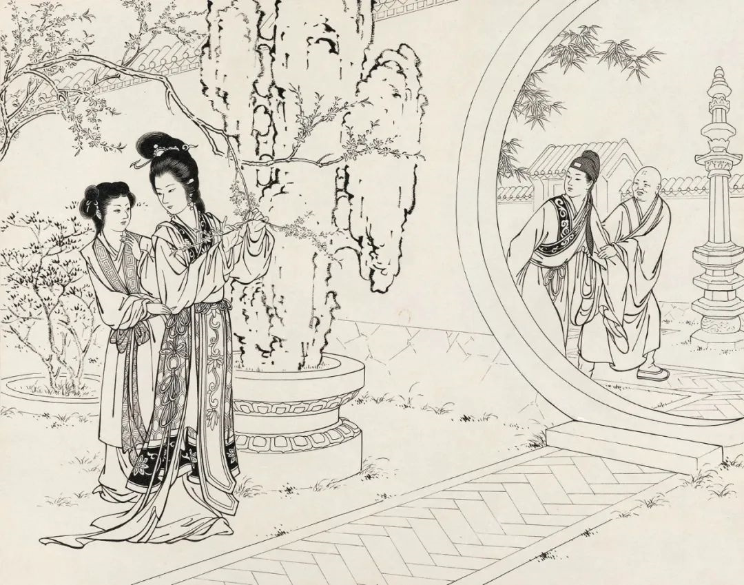 1949年后,王叔晖在出版总署美术科、人民美术出版社连环画创作组工作,1953年中华人民共和国新《婚姻法》颁布,结合当时关于女性的自主恋爱与婚姻自由的宣传需求,人民美术出版社安排王叔晖以《西厢记》为题进行创作,由此诞生了王叔晖四条屏版《西厢记》。她熔“兰叶描”与“界画”手法于一炉,将传统白描技法运用得非常娴熟,线条疏密、顿挫有致,流动自如,充分展示了中国传统线描的魅力。该作品为设色仕女画,共16幅,工谨细腻的画风、清新雅致的色彩、风流多姿的人物使作品大获成功,1954年作品获得第一届全国连环画创造评奖“绘画一等奖”。王叔晖在《西厢记》条屏上的成功使其赢得了连环画版《西厢记》的创作任务。为降低印刷和销售成本,连环画版《西厢记》选用白描的创作手法完成。这样,128幅为《西厢记》连环画而创作的白描作品应运而生。中国美术馆现存10张王叔晖的《西厢记》白描稿,是这128幅作品目前仅存的硕果。