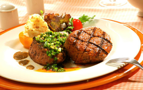 (5)第五道是主菜。主菜要精美,有牛排、火鸡、肉用鸡、鸭、猪排、野味等;吃主菜时喝红葡萄酒。