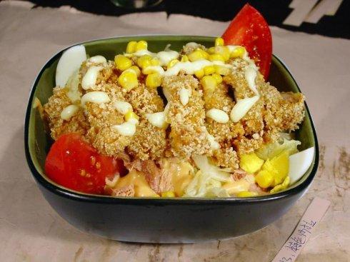 沙拉除了蔬菜之外,还有一类是用鱼、肉、蛋类制作的,这类沙拉一般不加味汁,在进餐顺序上可以做为头盘食用。
