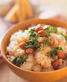 1.香菜蟹肉饭材料:香菜1/3杯(含叶)蟹肉1/2杯蒜味花生2大匙白米1杯调味料:盐1大匙酒1/2大匙糖1/3大匙胡椒粉1小匙香油2小匙做法:(1)将香菜洗净浸泡在水中10分钟,捞起沥干水分,香菜叶一一摘下,香菜茎切末备用。(2)将米洗净沥干水分,加入1杯水浸泡15分钟,再加入调味料拌匀,蟹肉与香菜茎末铺在米上,放入电饭锅中煮熟,熟后再焖15分钟。(3)打开锅盖后,再加入香菜叶与花生,用饭匙略拌匀后,即可盛起食用。