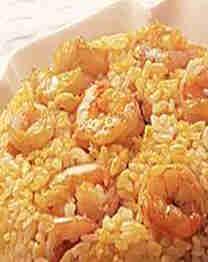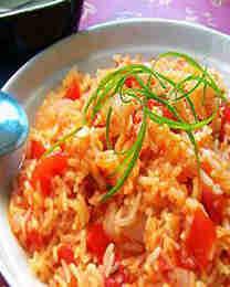 21.地中海味西班牙饭材料:大米、番茄1个、洋葱1个调味料:盐适量,鸡精少许、蒜头3瓣、小茴香1小匙、油1/4杯(60ML)、盐1/2小匙、番茄酱2大匙、沸水2杯做法:1、米洗净沥干水分,番茄、洋葱切丁,蒜头切碎备用。2、锅烧热,下油,待热后,倒入米炒至有些金黄色,大约3—5分钟。3、加入盐、小茴香、洋葱、蒜头炒大约1分钟。4、然后加入番茄,番茄酱和沸水,煮沸,关小火,盖上锅盖,焖大约20分钟左右,直到水收干后即可装盘。
