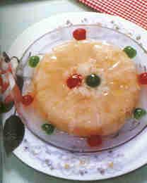 18.玻璃肉饭材料:糯米500克,冰肉片250克,白糖600克,橘饼10克,葱珠油15克,芝麻25克,糖制冬瓜片15克,红绿樱桃各6个。调味料:盐适量,鸡精少许。做法:1、先将糯米洗净盛在碗里,加入清水少许,放进蒸笼炊熟。把橘饼、糖冬瓜片切成粒,加入芝麻、白糖450克和葱珠油、糯米饭一起拌匀。2、将冰肉片先摆在碗底,再将红绿樱桃切半摆入,然后把拌好的糯米饭放在上面,放进蒸笼炊热倒翻过碗,把白糖150克和入清水,淀粉水少许,勾成薄芡淋上即成。