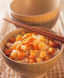 15.地瓜起司饭材料:地瓜1条起司1片白米1杯水1杯调味料:盐1小匙油1/3大匙做法:(1)将米洗净,加入1杯水,浸泡15分钟。(2)将地瓜去皮切丁备用。起司也切成小丁片备用。(3)将地瓜丁、油加入米中,稍微拌一下。(4)放入电饭锅中蒸熟,取出后立即放入起司片及盐拌匀后即可食用。