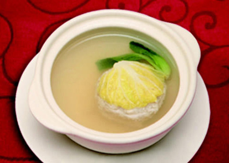 ![]() 国宴:狮子头 这是周恩来总理最喜爱的一道国宴菜。此菜选用肥四瘦六的五花肉手工切成小粒,和国宴顶级清汤制作而成,形态丰满,犹如雄狮之首,因此得名‘狮子头’。周恩来总理赞誉此菜“清淡不淡,肥而不腻”。