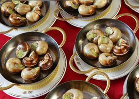 ![]() 国宴菜:法式锔蜗牛 这是法国前总统希拉克最喜爱的一道国宴菜,此菜选用优质进口上等蜗牛和黄油、蒜茸烤制而成,食法独特,营养价值很高,是一道中西合璧的经典国宴菜。