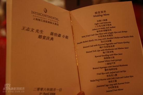 5 王志文与陈坚红婚宴菜单